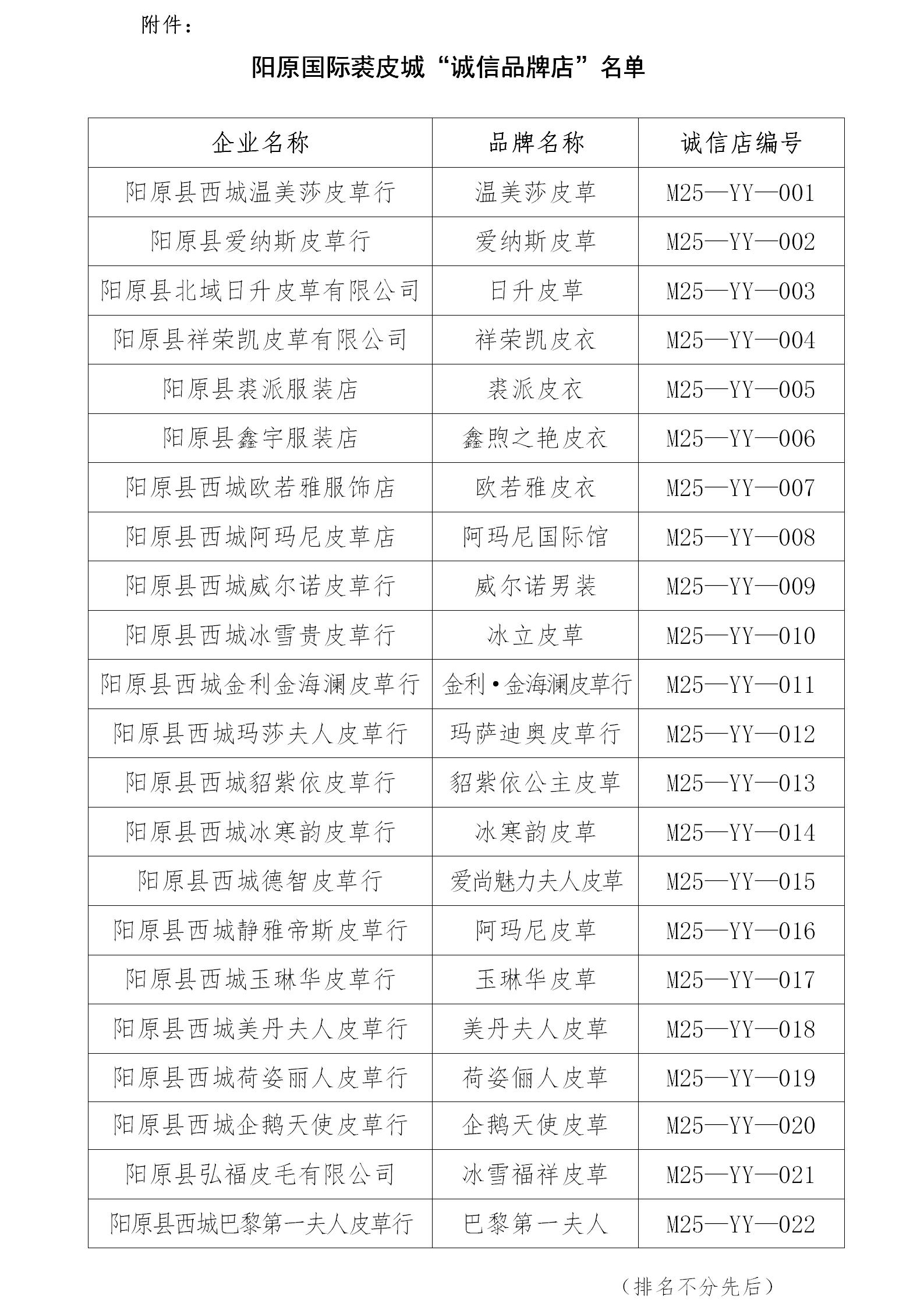 关于通报表扬阳原国际裘皮城22家 “诚信品牌店”的决定