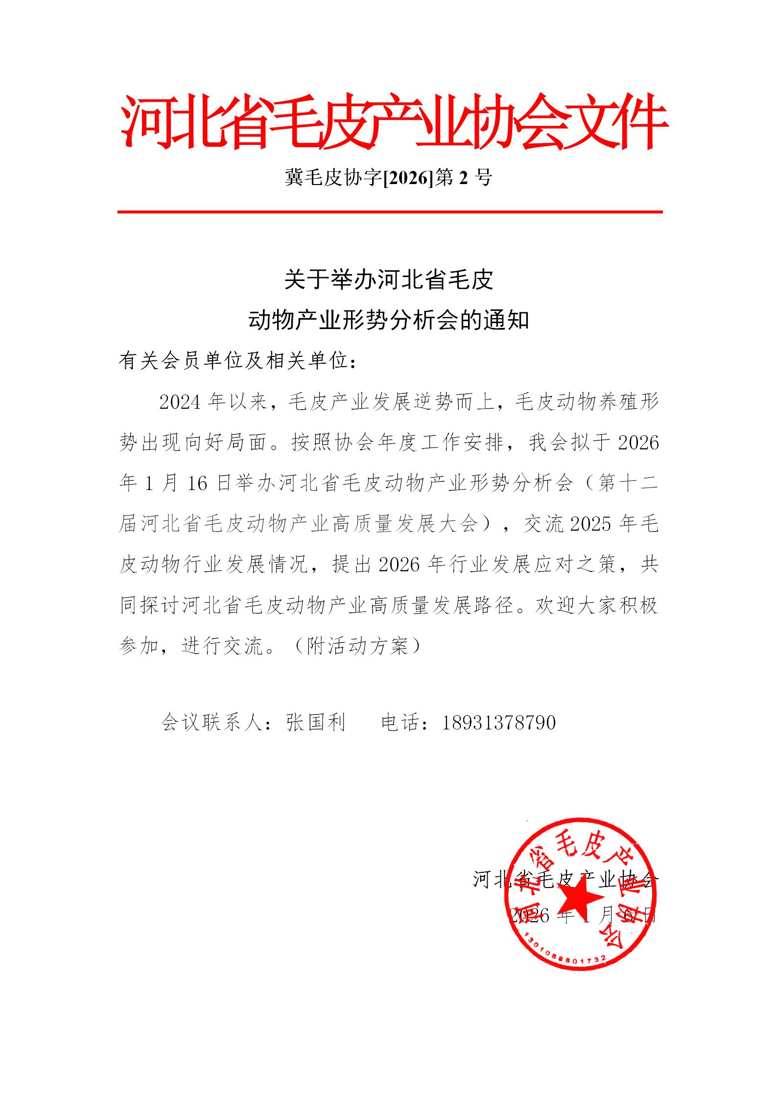 一、会议名称:河北省毛皮动物产业形势分析会(第十二届河北省毛皮动物产业高质量发展大会)