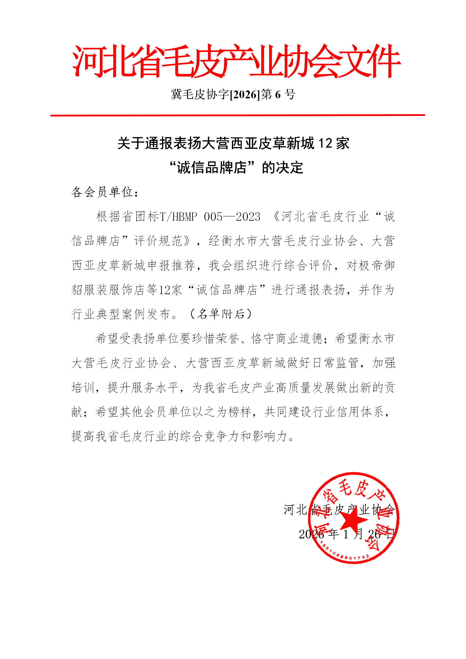 2025-11-28省协会发布阳原国际裘皮城 “诚信品牌店” 典型案例