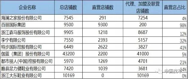 百强榜单中2019年连锁店铺规模超9000家的企业有6家(为伽蓝43200家,上海家化化妆品专营店约13000家,安踏12943家,大东10169家,森马9905家,百丽鞋类店铺9500家),较去年增加一家。伽蓝集团和大东集团为2019新入榜企业。2019年连锁规模超5000家店铺以上企业12家,与去年持平。