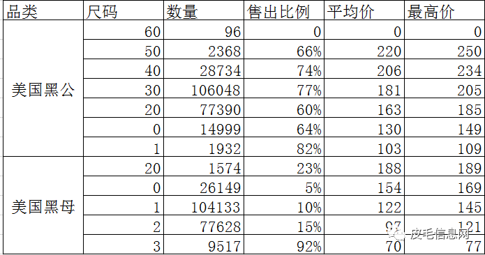 由于市场不确定性和新冠病毒疫情的影响,当日的拍卖再次遇到选择性购买。BLACKGLAMA宝嘉美公皮的销售选择性非常突出,由于疫情旅行限制,缺少了希腊市场的支持,因此大部分皮张被收回。BLACKGLAMA宝嘉美母皮售出了20%,主要的买家来自韩国。