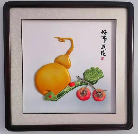 辛集文丽皮贴画是河北省辛集市以皮革边角料为原料创作的传统手工艺品,2019年入选省级非物质文化遗产代表性项目名录。非遗技艺:采用真皮纹理和质感,通过画、剪、包、粘、贴等纯手工工序制作,融合国画、年画、剪纸等传统艺术形式,兼具浮雕效果与乡土气息。现代转型:推出卡通图案、生肖团扇等文创产品,结合电商直播销售,如“十二生肖皮画团扇”单场直播销量超300件。