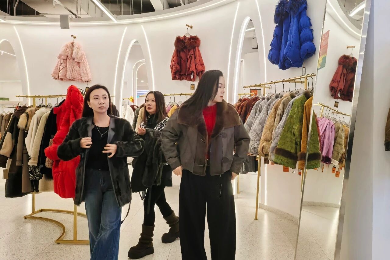 一家皮草店店长王静说:“今年,我们结合市场需求,推出了更多轻便、时尚的款式,尤其是拉贡、小湖羊系列和年轻化款式,深受顾客喜欢。这段时间来店里挑选衣服的顾客络绎不绝,销售额比去年同期涨了不少。”