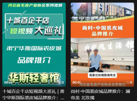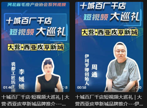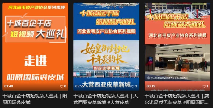 “十城百企千店短视频大巡礼”是河北省毛皮产业协会精心打造的新媒体产业推广专题活动,是协会“网站+公众号+短视频”三位一体全媒体传播矩阵的核心组成部分,构建起河北毛皮产业全方位宣传格局。自启动以来,在行业内及大众层面引起强烈反响,有效推动了产业数字化传播与品牌升级。
