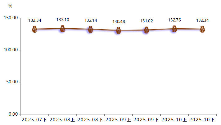 尽管熟皮价格指数走弱,但大衣价格指数在10月表现出一定的韧性。在天气转凉背景下,大衣的市场需求逐步回暖,10月下半月大衣价格指数为132.34点,较9月下半月上涨1.01%,同比涨幅达8.06%。具体来看,10月上半月指数曾冲高至132.76点,环比上涨1.33%,表明季节性备货需求有所释放;下半月虽小幅回调0.32%,但仍维持在相对高位,表明市场对裘皮大衣的消费接受度持续提升。整体而言,大衣价格的回升既得益于季节性需求的温和释放,也反映出成品端对原料价格波动存在的传导滞后效应。
