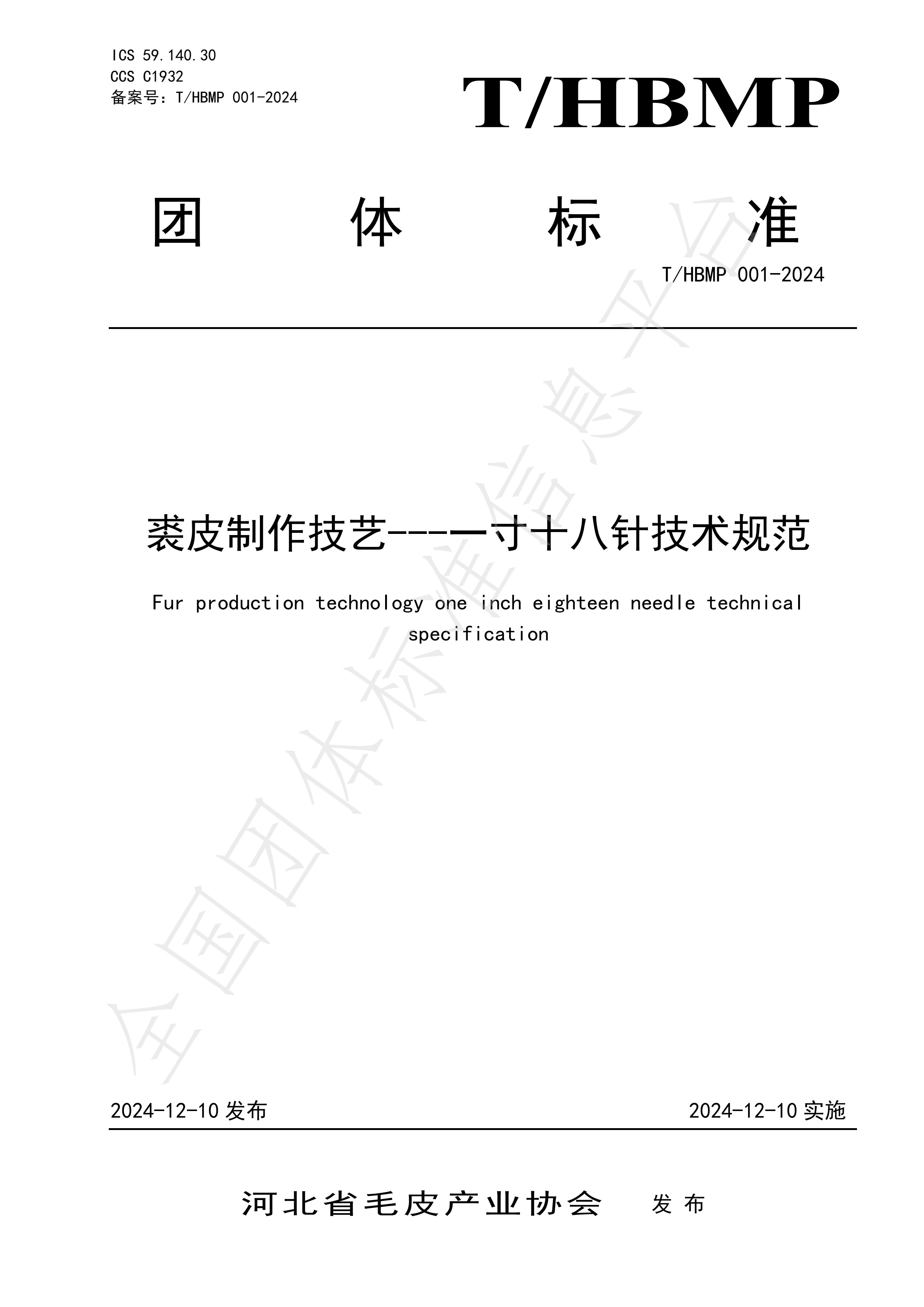 裘皮制作技艺---一寸十八针技术规范