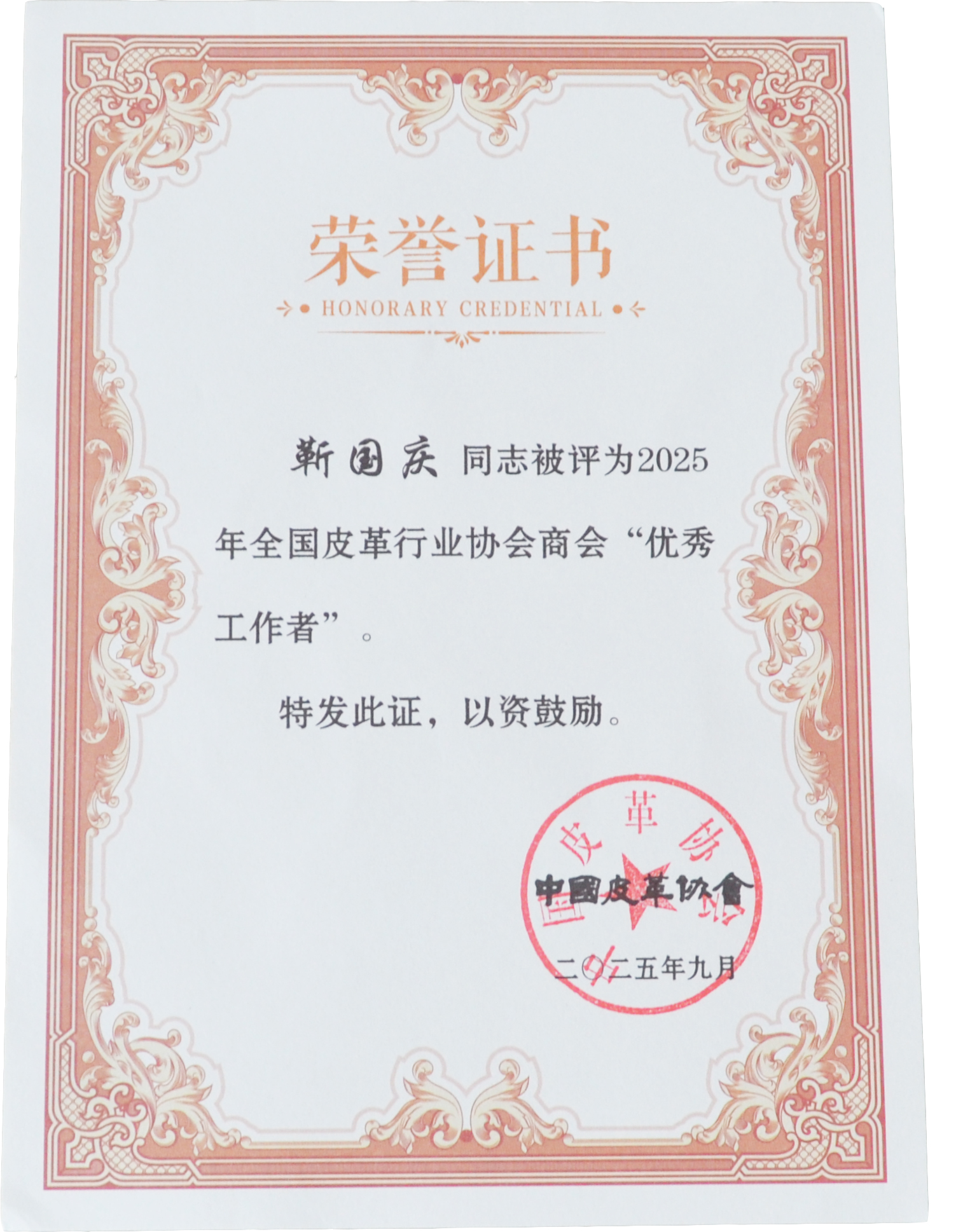 2025年全国皮革行业协会商会“优秀单位” 2025年授予靳国庆全国皮革行业协会商会