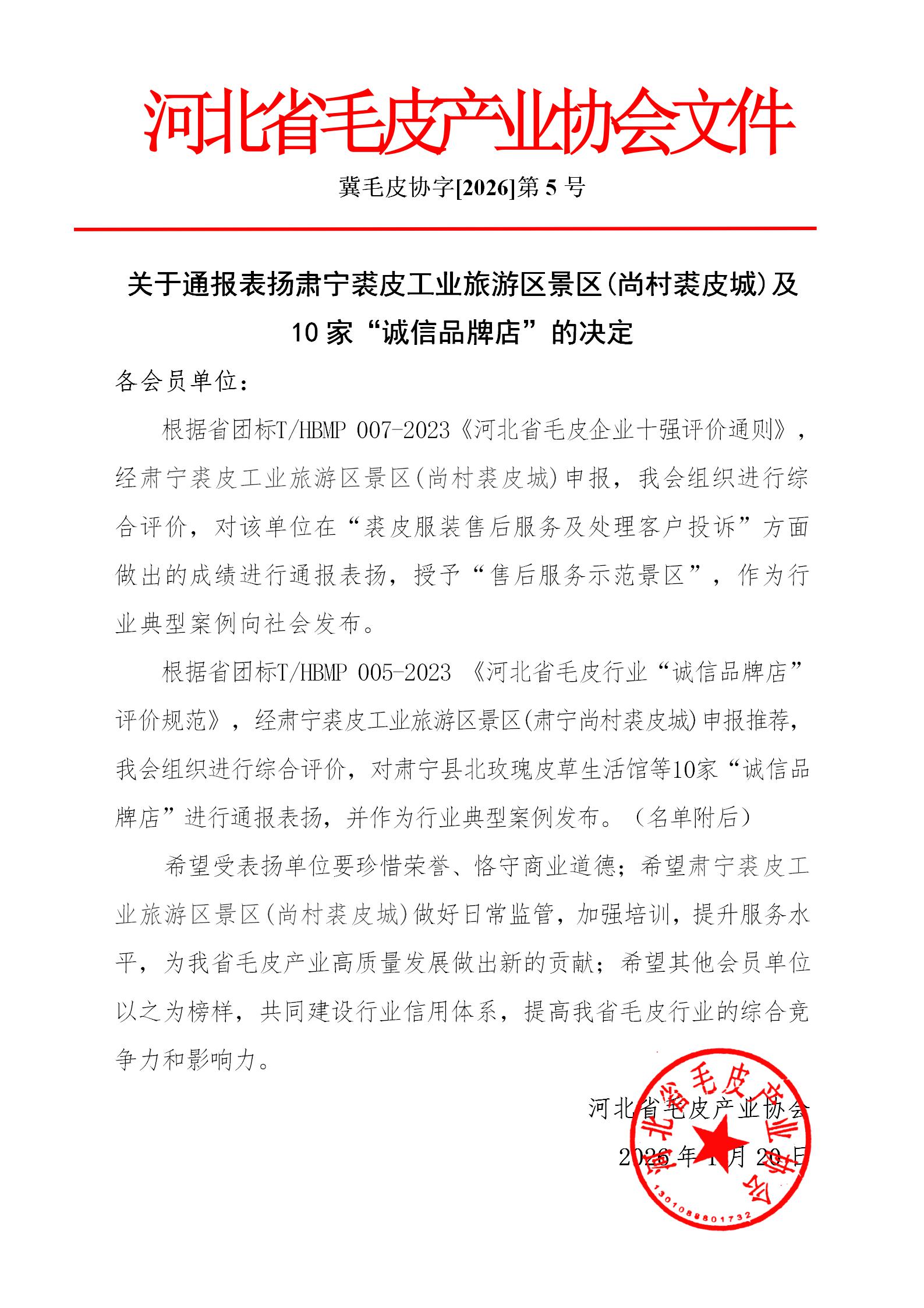 2026-1-31省协会发布大营西亚皮草新城“诚信品牌店” 典型案例