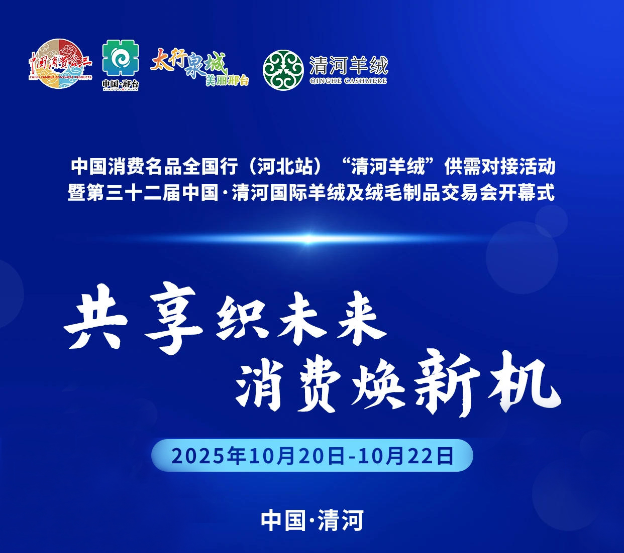第三十二届中国·清河国际羊绒及绒毛制品交易会将于2025年10月20-22日在河北省清河县举办。本届交易会以“共享织未来 消费焕新机”为主题,旨在汇聚行业供需资源,壮大消费名品区域品牌,促进特色羊绒产业发展。