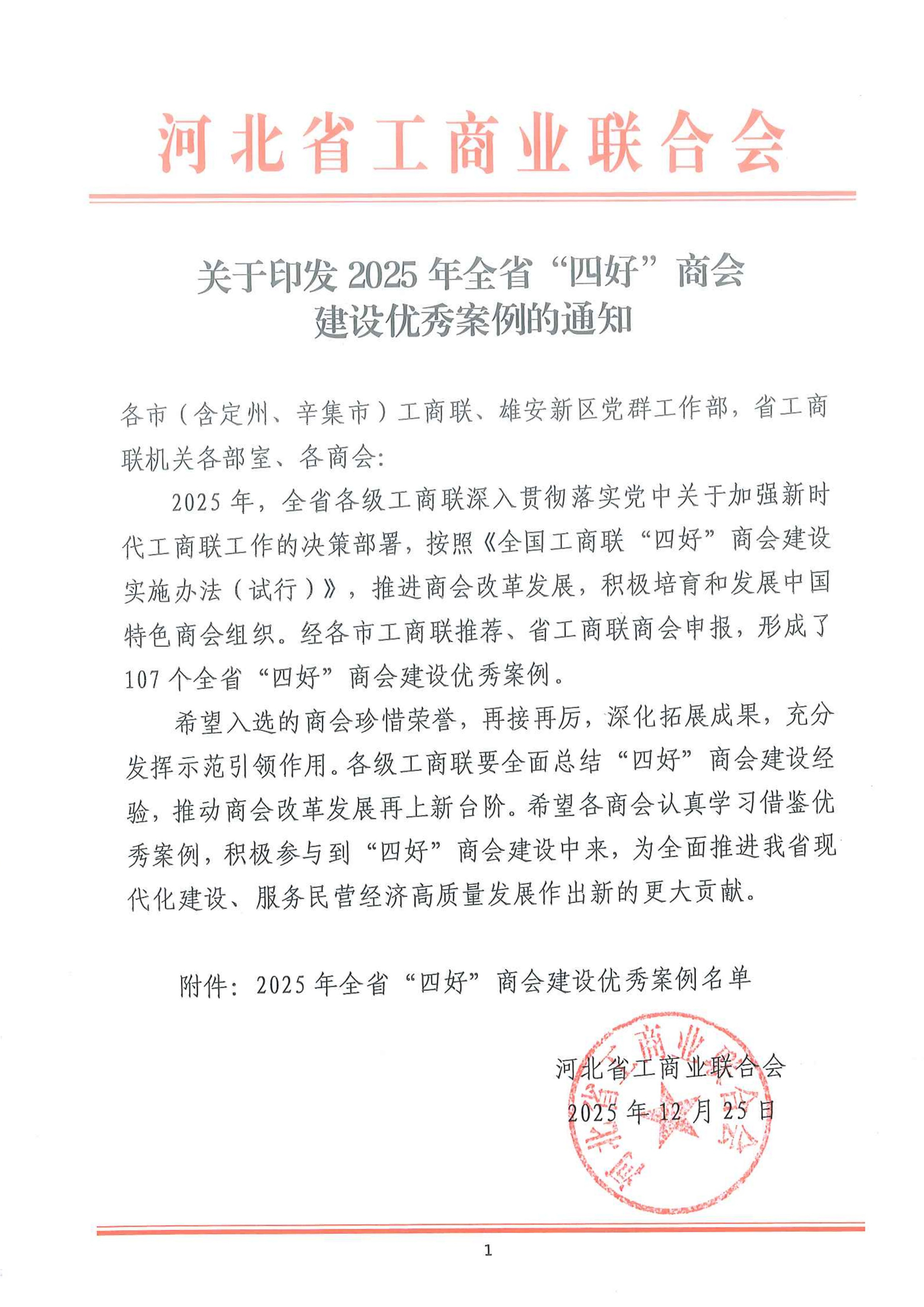 2025-12-27河北省毛皮产业协会入选河北省工商联“四好商会”建设优秀案例