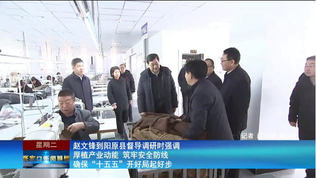 2026年3月3日,张家口市委书记赵文锋到阳原县督导调研项目建设、产业发展、安全生产等工作。他强调,要深入学习贯彻习近平总书记重要指示精神,认真落实党中央决策部署和省委工作要求,厚植发展动能,筑牢安全防线,奋力实现一季度“开门红”,确保“十五五”开好局、起好步。