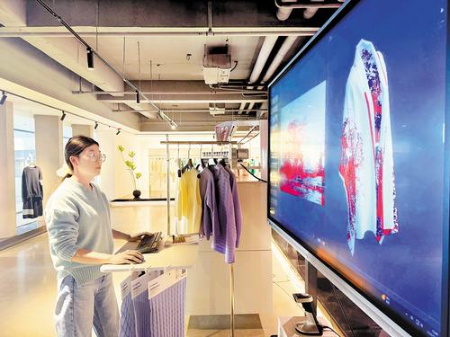 3月12日,新华·事坦格羊绒一线成型研究院,设计人员利用智能系统进行AI创款。 河北日报记者 常方圆摄