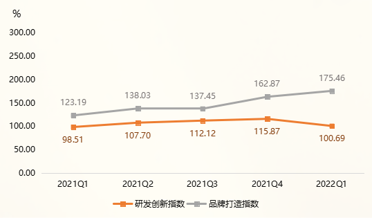 图八 研发创新及品牌打造指数走势图