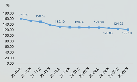 2022年一季度,熟皮产品价格指数持续下滑,具体运行情况如图一所示: